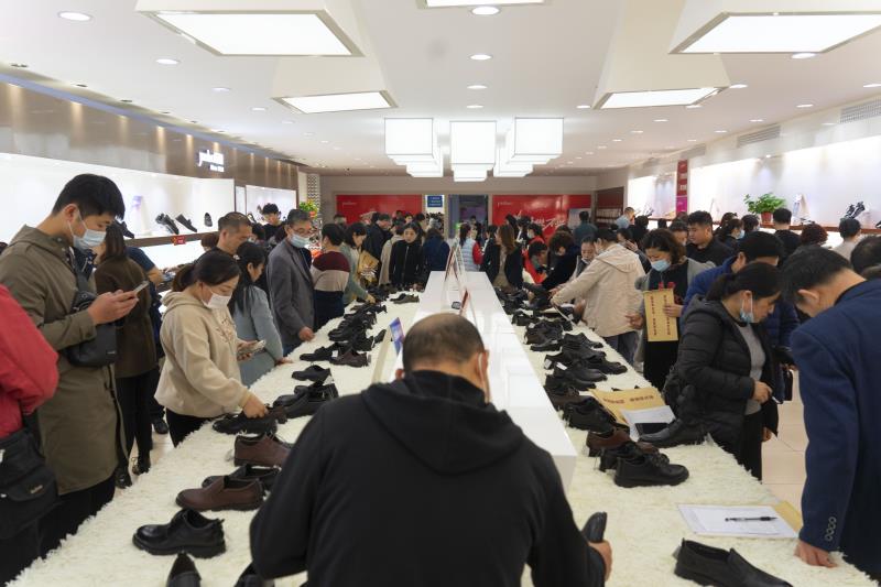 11月18日,集團總部四樓樣品室內,人聲鼎沸,熱鬧非凡。來自全國各地的幾百位經銷商齊聚于此,共同參加主題為“起航·聚創新贏未來”的金猴皮鞋2021春季新品發布會,大家盛贊新品亮點紛呈,掀起一波接一波下單高潮。