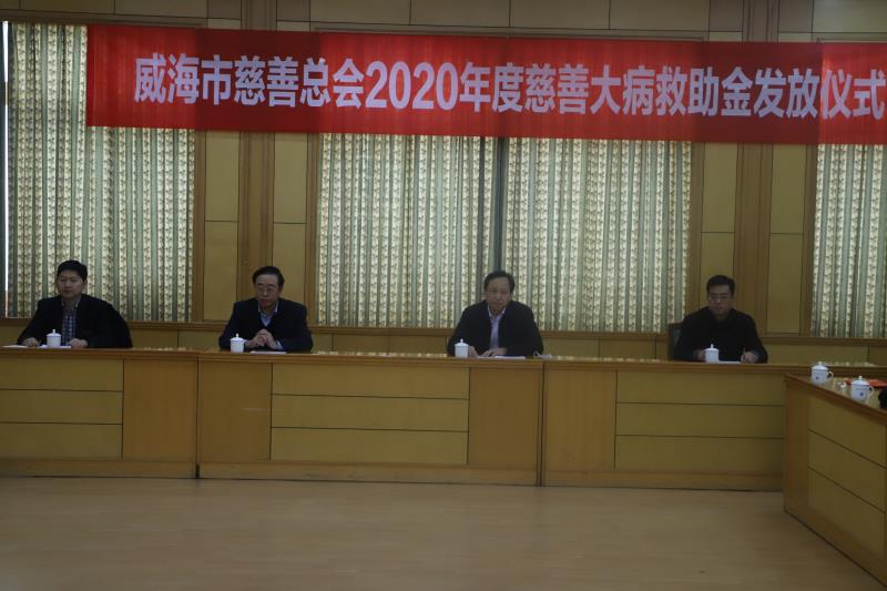 1月8日,威海市慈善總會舉行2020年度慈善大病救助金發放儀式,威海市民政局黨組書記、局長、市慈善總會常務副會長欒波,市民政局黨組成員、二級調研員、市慈善總會副會長宋寶林,集團公司紀委書記、工會主席鄒曉伍共同向大病受助人員代表發放救助金。
