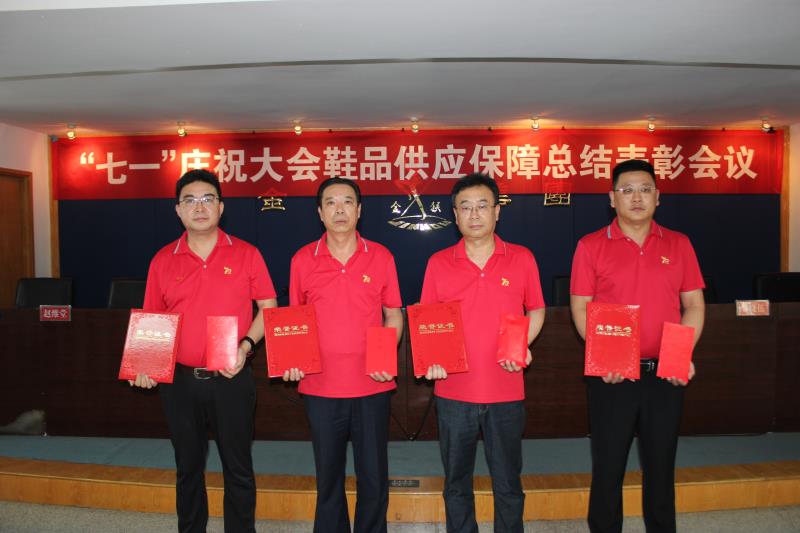 8月4日,集團公司隆重召開慶祝中國共產黨成立100周年大會鞋品供應保障總結表彰會議,總結了公司服務保障黨和國家重大活動的經驗,表彰獎勵了做出貢獻的宋鴻濤、王愛國、王福全、于杰四名先進個人。