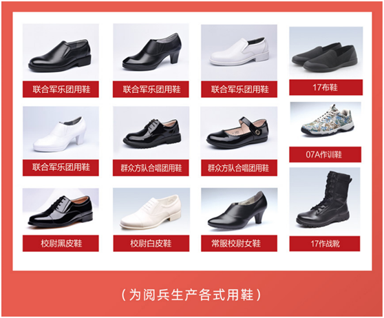 閱兵鞋,金猴造。自2009年始,歷屆閱兵式上,留下金猴鞋的身影,多年的擁軍事業與技術積累,帶來新的機遇,為企業注入了新的能量。