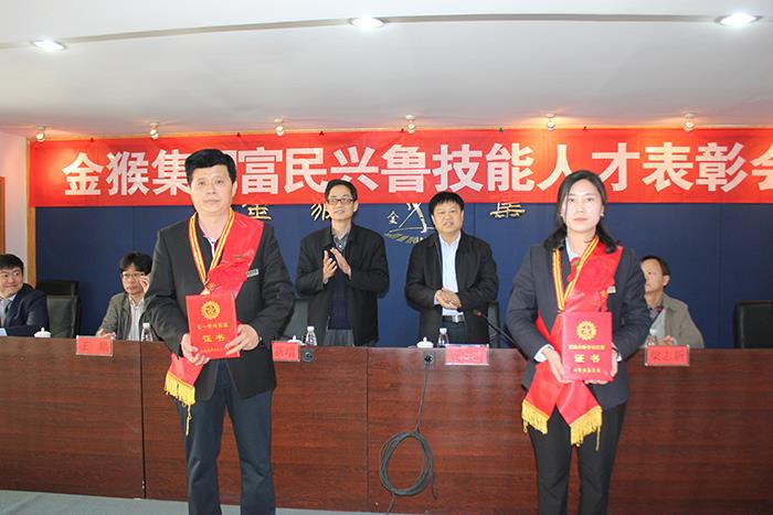 省輕工聯社黨組成員、副主任周新瑞在會上作了講話,他首先向六名獲獎人員表示祝賀,認為他們受到表彰確為實至名歸,為他們在行業大賽及平常工作中做出的優異成績點贊,鼓勵大家珍惜榮譽、再創佳績。周主任指出,金猴集團始終高度重視實施人才強企戰略,培養造就了一大批高素質技能人才,在歷次全國和省市行業技能大賽中都取得了讓與會領導、專家、同行及新聞媒體為之震撼的優異成績,既為保持行業領軍企業地位提供了堅實的人才支撐和智力保障,也為山東省乃至全國輕工系統和皮革行業發展做出了重要貢獻,希望公司繼續以引領行業發展為己任,在不斷做大做強企業的同時,為國家經濟發展和國防軍隊建設做出新的更大的貢獻。