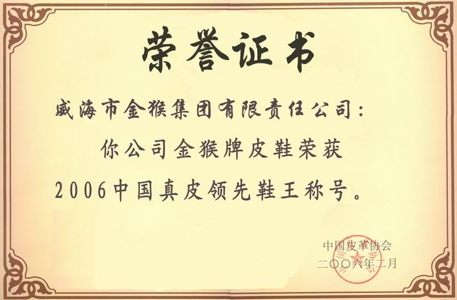 ★2006年被中國輕工業聯合會、中國皮革協會授予“中國真皮領先鞋王”稱號